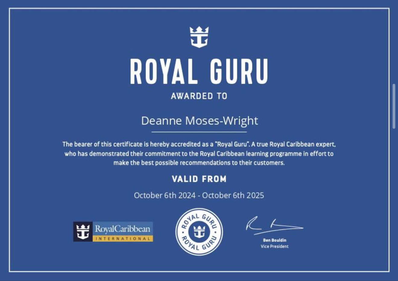 Booking a cruise with Deanne can be a delightful experience, as she brings a wealth of knowledge and enthusiasm to the process. Deanne’s expertise in the travel industry ensures that she can offer personalised recommendations tailored to your preferences and needs. Whether you’re looking for a relaxing voyage through the Caribbean, an adventurous expedition to Alaska, or a cultural immersion in the Mediterranean, Deanne has the insights to help you choose the perfect itinerary. She takes care of all the details, from selecting the right cabin and arranging accessible accommodations if needed, to organising shore excursions and onboard activities. With Deanne’s guidance, you can rest assured that your cruise booking will be seamless and stress-free, allowing you to focus on the excitement and anticipation of your upcoming adventure.