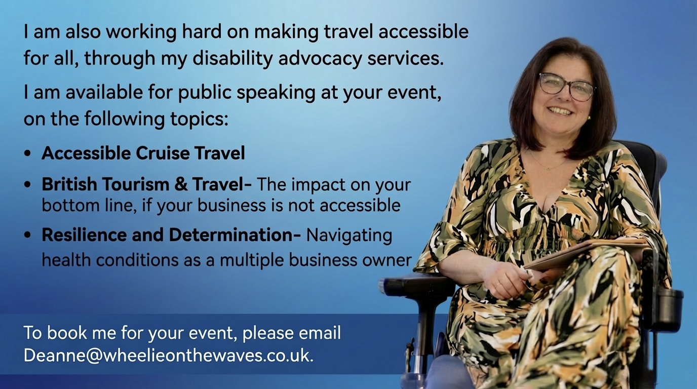 I take care of all of the details, from selecting the right cabin and arranging accessible accommodations if needed, to ensuring individual cruise line accessibility procedures and protocols are met, and everything in between. As a wheelchair user myself, I truly understand the importance of clarification, and I happily take time to ensure every additional element is in place, to ensure my clients travel safely and comfortably for their whole journey. Working with myself, you can rest assured that your cruise booking will be as stress-free as it can be, allowing you to focus on the excitement and anticipation of your upcoming adventure.
